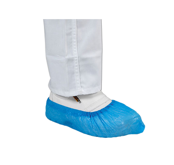 Copriscarpa monouso in polietilene clorinato 3,2 g, non sterile, con elastico alla caviglia, ottimo nella tenuta.