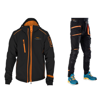 Il Softshell Clank e i pantaloni Looney si uniscono in una Dark Mode, un look coordinato unico nel suo genere che abbina stile e funzionalità.